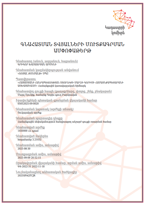 Պաշտոնական էլ. փոստ` 50206300@e-citizen.am